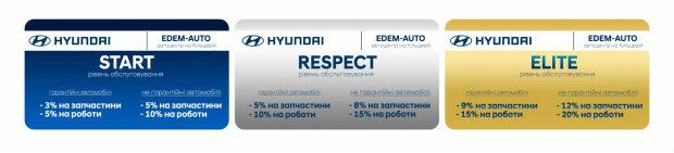 - Действие дисконтных уровней не распространяется на услуги, предоставляемые автомобильным центром HYUNDAI на Кольцевой в рамках целевых сервисных программ и других специальных акций;