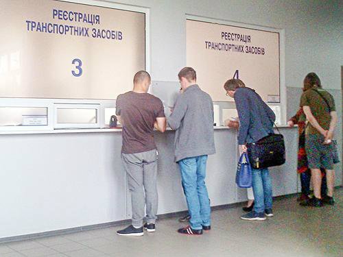 Засекаем время и открываем двери сервисного центра. И понимаем, что мы выбрали не самый удобный ТСЦ в Киеве, так как он находится на 3-м этаже административного здания. Внутри, все как и во времена МРЭО: окошки подачи документов, кассы, окна выдачи и очереди. Но отличия все же есть. Все сотрудники в штатском – никаких милиционеров. В холле есть столик консультанта, который и рассказал нам алгоритм будущих действий, выдал комплект договоров купли-продажи транспортного средства, акт осмотра ТС и проконсультировал, как их нужно заполнять.