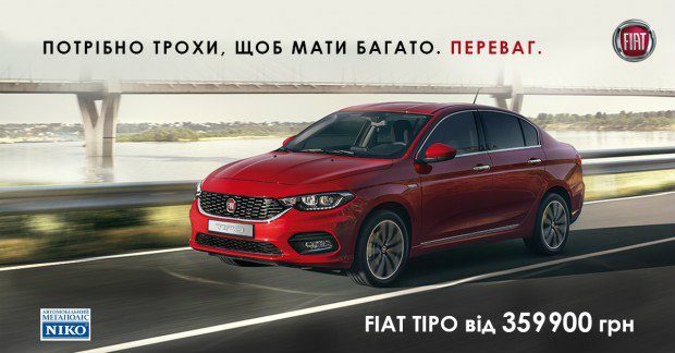 Почувствуй все преимущества Tipo на скоростном тест-драйве у официального дилера Fiat «НИКО Диамант» на Бориспольском шоссе, 13-й км.