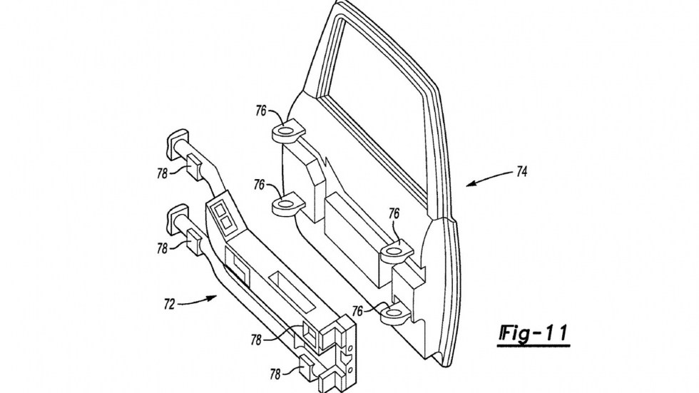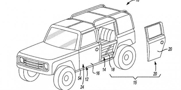 Американский автопроизводитель подал заявку на патент. Ford регистрирует конструкцию быстросъёмных дверей. Хоть в описании к патенту и не было не раз упомянуто слово Bronco, эскиз внедорожника, на котором показывается конструкция дверей, очень похож на Bronco R, сообщает .