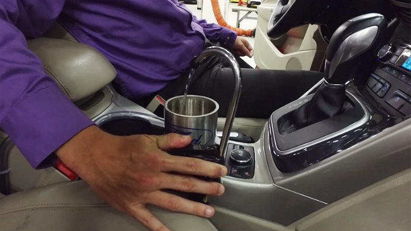 Инженеры компании Ford на ежегодной конференции под названием «Further with Ford» рассказали о необычных разработках, которые, по их мнению, могли бы быть интересны потребителям. Одной из них стала система «On-the-go H2O» — диспенсер для воды, установленный в салоне на центральном тоннеле автомобиля, сообщает .