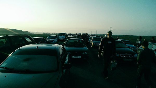 "Дорога заблокирована. Машины стоят в 4-5 рядов", – сообщают очевидцы.