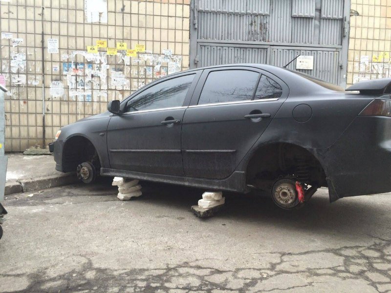 В Киеве массово крадут колеса с авто. 25 марта на Оболони "разули" очередной автомобиль, сообщает .