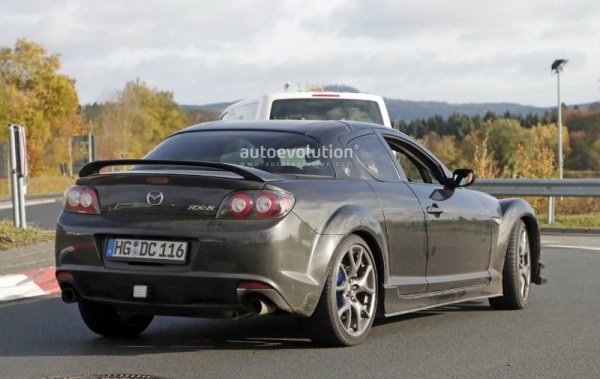 То, что это мул, а не обычный экземпляр купе RX-8, выдают вставки на крыльях. Предсерийные прототипы Mazda RX-9 получат уже кузов, который будет схож с концептом RX Vision. Это означает, что нас ожидает купе длиной 4440 мм, шириной 1910 мм и высотой не более 1200 мм. А снаряженная масса будет порядка 1300 килограмм. Сердцем новинки станет 1,6-литровый двухроторный турбодвигатель в паре с электромотором. Суммарная мощность такой гибридной установки составит около 450 лошадиных сил. RX-9 будет оставаться по-прежнему единственным в мире автомобилем с роторным двигателем Ванкеля.