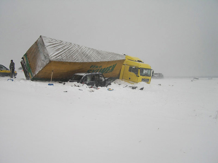 «Все произошло около 14:40 на 98-м километре дороги Брест — Минск — граница РФ, недалеко от деревни Горск Березовского района, — сообщили в ГАИ Брестской области. — За рулем фуры MAN с полуприцепом находился гражданин Польши, молодой человек 1988 г. р. По предварительным данным, он неправильно выбрал безопасную скорость движения и не учел сложные погодные условия, из-за чего не справился с управлением и выехал на полосу встречного движения. В ней поляк совершил касательное столкновение с Volkswagen Passat и Opel Sintra. После этого последняя легковушка выехала в кювет, где на нее упал прицеп MAN».