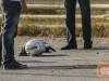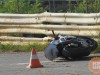 На треке по-прежнему лежит мотоцикл, причем в нормальном состоянии и белый шлем. Тело Гусина находится за отбойником.