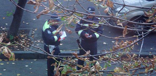 Первый патруль-нарушитель, которого мы засекли, находился на улице Борщаговской. Машина была хитро спрятана за выступ подземного перехода, передает Сегодня. За ней же притаились и сами гаишники, положив при этом «ВИЗИР» на крышу автомобиля. Когда мы подошли к ним и, представившись, попросили объяснений, инспекторов ничего незаконного в своих действиях не увидел. «Думаю, мы находимся в поле зрения водителя, нас видно. Мы же не скрываемся за сооружением (хотя прятались за переходом. — Авт.)», — заявил он. Чтобы проверить, видно ли водителям патруль, мы специально остановили проезжающую машину. «Проезжая по дороге, я машину и инспекторов вообще не увидел, пока не доехал до перехода, за которым они прятались», — рассказал нам водитель Игорь.