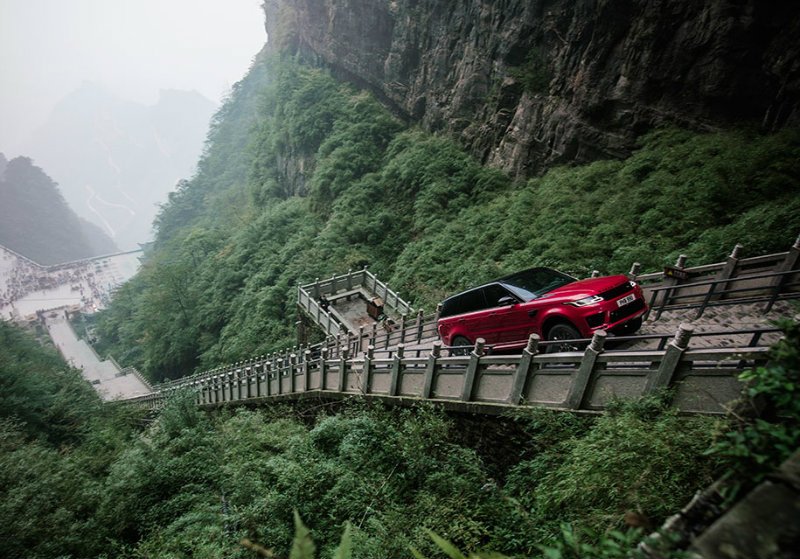 Гибридная версия внедорожник Range Rover Sport поднялась к арке «Небесные врата» на китайской горе Тяньмэнь, преодолев лестницу из 999 ступеней, уклон которой составляет 45 градусов, сообщает .