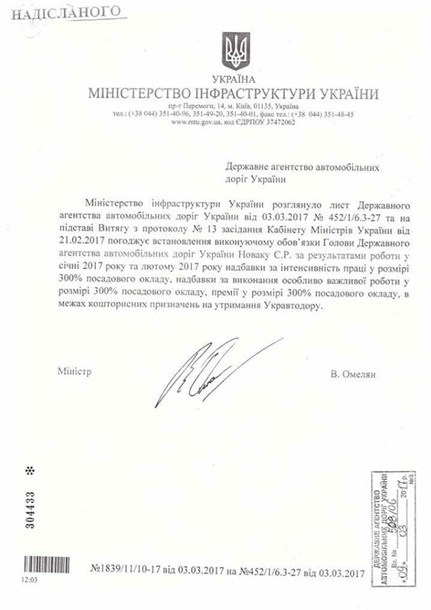 Глава Укравтодора Славомир Новак получил зарплату на 900% больше, чем оговаривалось. Об этом написал журналист Сергей Мальнев на своей странице в Facebook, сообщает .