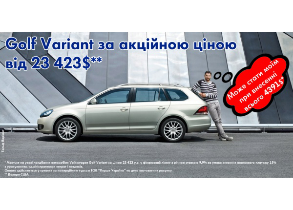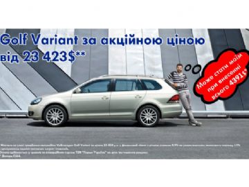 Volkswagen Центр Херсон радий повідомити, що з 8 серпня 2012 р. на автомобілі моделі Golf Variant у варіанті комплектації Trendline діє спеціальна пропозиція ціноутворення -14% від рекомендованої роздрібної ціни!.