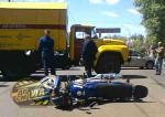 После столкновения с передним бампером грузовика, у мотоцикла помята пластиковая обшивка и поврежден двигатель. А вот у служебного ЗИЛа видимых «травм» не обнаружено.