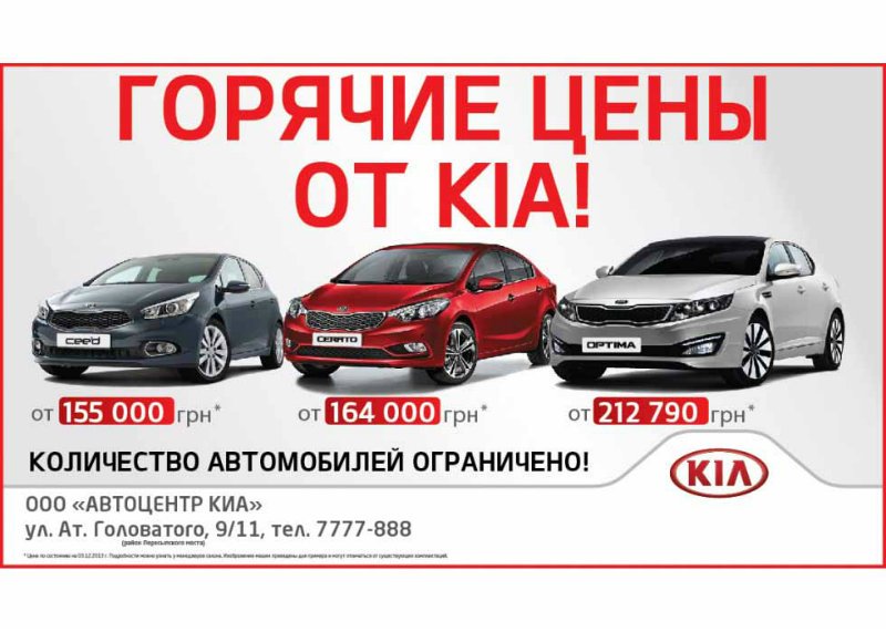 АВТОЦЕНТР КИА объявляет о горячих ценах на автомобили KIA!