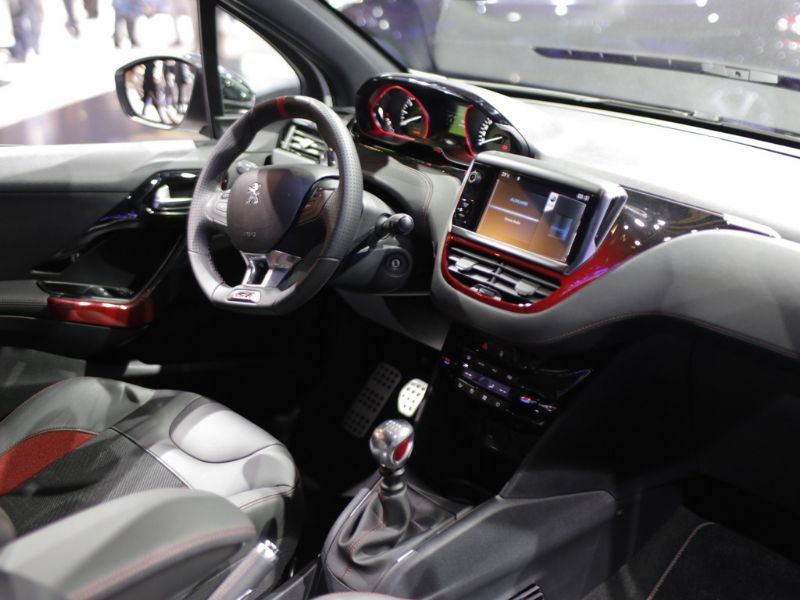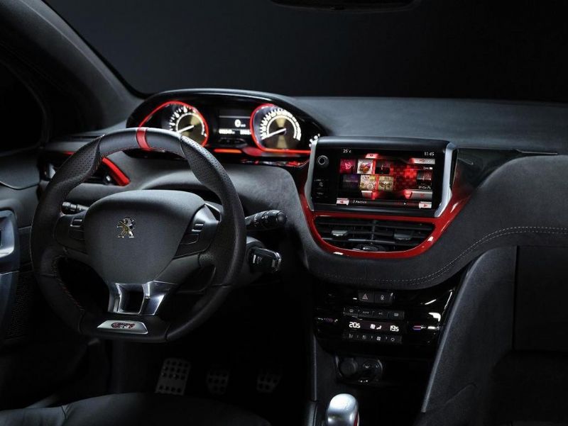 В потоке "заряженный" Peugeot 208 GTi можно будет вычислить по расширенным колесным аркам, новой решетке радиатора, более агрессивным бамперам и 17-дюймовым колесным дискам. Интерьер, отделанный кожей Nappa, получил контрастные вставки в оформлении (включая спортивные кресла, переднюю панель, приборный щиток и рулевое колесо), алюминиевые накладки и оригинальные коврики.