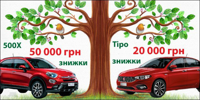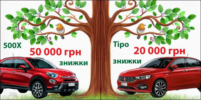 - Fiat 500X 334.731.0 знижено на 40.000 грн (данна версія на ринок в подальшому поставлятися не буде)