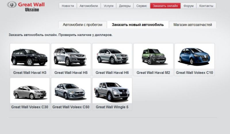 Популярность автомобилей Great Wall среди украинских автолюбителей постоянно растет, поэтому найти автомобиль в нужном цвете и желаемой комплектации подчас бывает непросто. Отныне покупателю не нужно объезжать или обзванивать салоны Great Wall, ведь новый сервис онлайн бронирования позволяет найти желаемый автомобиль и мгновенно уточнить его наличие в любом из дилерских центров на территории Украины в несколько кликов. Для того, чтобы воспользоваться сервисом, нужно нажать на вкладку «Заказать онлайн» и выбрать в выпадающем меню пункт «Новые автомобили».