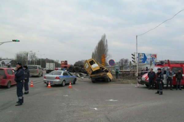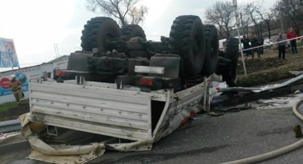 Масштабная авария произошла на автодороге "Кавказ" в Ставропольском крае - два грузовика гумконвоя России столкнулись с пассажирской Газелью.