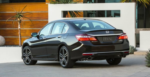 Седан Honda Accord 2016 получил пересмотренное оформление передней и задней части. Так, модель имеет агрессивный структурированный передний бампер с увеличенными вентиляционными отверстиями, в которых разместились новые светодиодные противотуманные фары.