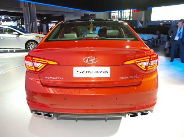 По словам главы североамериканского подразделения Hyundai Дейва Жуковски, облик новой Sonata задаст направление развития корпоративного дизайна компании для моделей массового рынка. Как и ожидалось изначально, новинка говорит на дизайнерском языке Fluidic Sculpture 2.0, уже опробованном на модели Genesis. Новая массивная решетка радиатора и крупные воздухозаборники визуально занижают автомобиль.