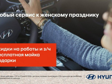 В период с 7 по 12 марта 2018 года включительно в БАЗИС АВТО все женщины смогут обслужить свои автомобили HYUNDAI на особых условиях и получить: