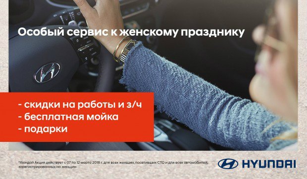 В период с 7 по 12 марта 2018 года включительно в БАЗИС АВТО все женщины смогут обслужить свои автомобили HYUNDAI на особых условиях и получить: