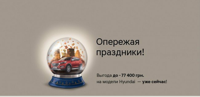 *Предложение действует с 7 по 30 октября 2016 года во всей дилерской сети ООО «Хюндай Мотор Украина» и распространяется на модельный ряд, кроме автомобилей Creta и Grand Santa Fe.