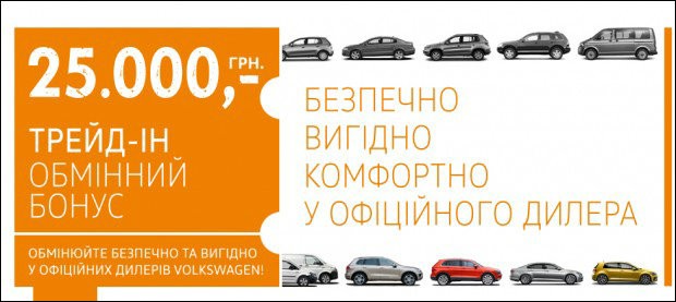 Тільки до 30 червня при обміні свого старого автомобіля на Новий Volkswagen, Ви отримуєте БОНУС – 25 000 грн.