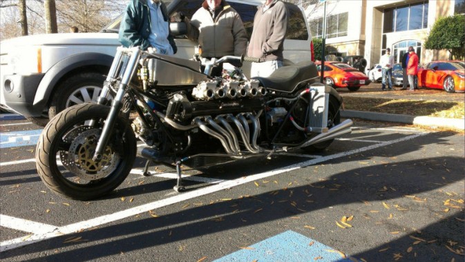 Этот мотоцикл был сооружен на базе мотора V12 от модели Lamborghini Aventador. Объем его мотора 4 литра. При этом он выдает мощность в 300 лошадиных сил. Этого монстра показали на автошоу Cars and Coffee Alpharetta, которое прошло недавно в американском штате Джорджия, сообщает .
