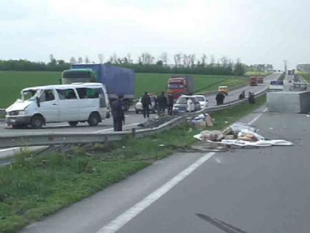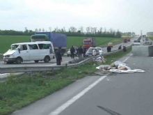 А уже в 14 ч. 45 мин. в Кировоградской области на 255 км. автодороги "Киев - Одесса" пассажирский микроавтобус Mercedes-Benz 212D опрокинулся через металлическое ограждение на полосу встречного движения. Это произошло из-за того, что прицеп с которым ехал микроавтобус сильно расшатался. В микроавтобусе находилось 11-ть пассажиров.