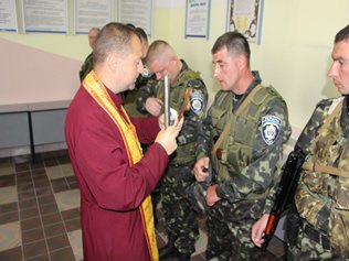 Священники Тернополя провели богослужение, освятили служебные автомобили и работников ГАИ, которые будут нести службу на Харьковщине. Каждому из них предоставили небольшие иконки и молитвенники.