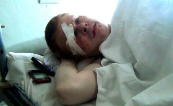 От нанесенных побоев, руководитель "ДК" не может самостоятельно передвигаться. Все время лежит в кровати. Из повреждений - сильное рассечение века, поврежденный глаз, нос, гематомы на лице, сотрясение мозга, ушибы спины и т.д.