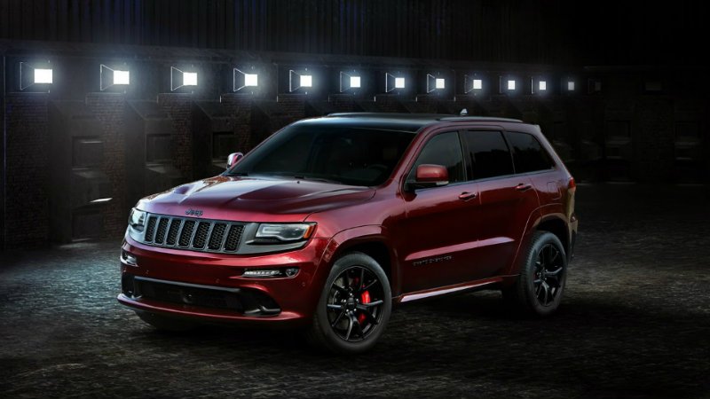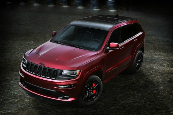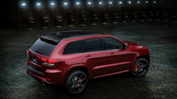 Jeep Grand Cherokee SRT Night получил окраску кузова с уникальным красным оттенком, а также крышу, корпуса внешних зеркал, задний спойлер и 20-дюймовые колесные диски черного цвета.
