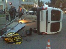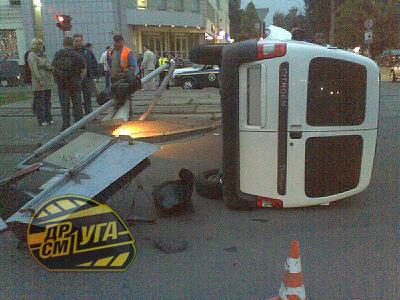 Водитель Citroen Berlingo ехал по улице Автозаводской со стороны площади Тараса Шевченка, когда внезапно перед ним «нарисовался» открытый люк. Поскольку скорость автомобиля была значительной, шаровую опору вырвало «с мясом». Сама же машина стала неуправляемой и по инерции неслась дальше вместе с канализационным люком под днищем. Последний на время превратился в адскую летающую тарелку, которая подталкивала авто к трамвайной остановке. В пункте назначения она стала на ребро, из-за чего машина оказалась на двух колесах и в таком положении проехала еще метров пять, попутно сбив светофорный столб. От удара он сломался в двух местах и упал на проезжую часть, при этом секции светофора отдельно друг от друга продолжали работать. Но это было только начало...