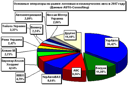Как видим, за кризисные годы на автомобильном рынке произошли значительные трансформации. Достаточно взглянуть на диаграмму крупнейщих операторов по итогам 2007 года, когда авторынок был на подъеме и кто тогда задавал тон в Украине. И сопоставить ее с нынешним положением дел. Потери понесли многие. А ряд компаний даже покинули украинский рынок или значительно сузили свое влияние.