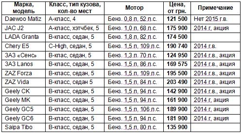 Оказывается, что не такой уж и скромный выбор авто в пределах $8тыс. Правда, судя по тому, что многие модели присутствуют только в варианте прошлых годов выпуска, можно предположить, что больше их в Украину завозить не будут. Особенно, с учетом норм Евро-5, которые вступят в силу в Украине с Нового 2016-го года. А вместе с новыми поколениями перечисленных доступных авто, скорее всего, придут и новые цены.