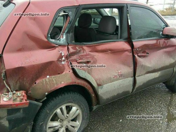 По предварительным данным, водитель автомобиля Hyundai Tucson не предоставил дорогу колонне военной техники для беспрепятственного проезда и столкнулся с тралом тягача, который перевозил танк.
