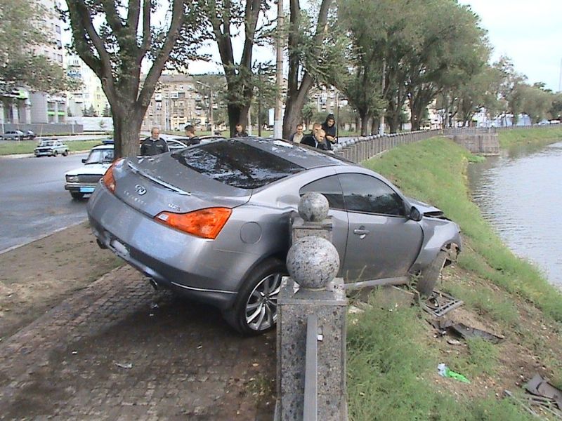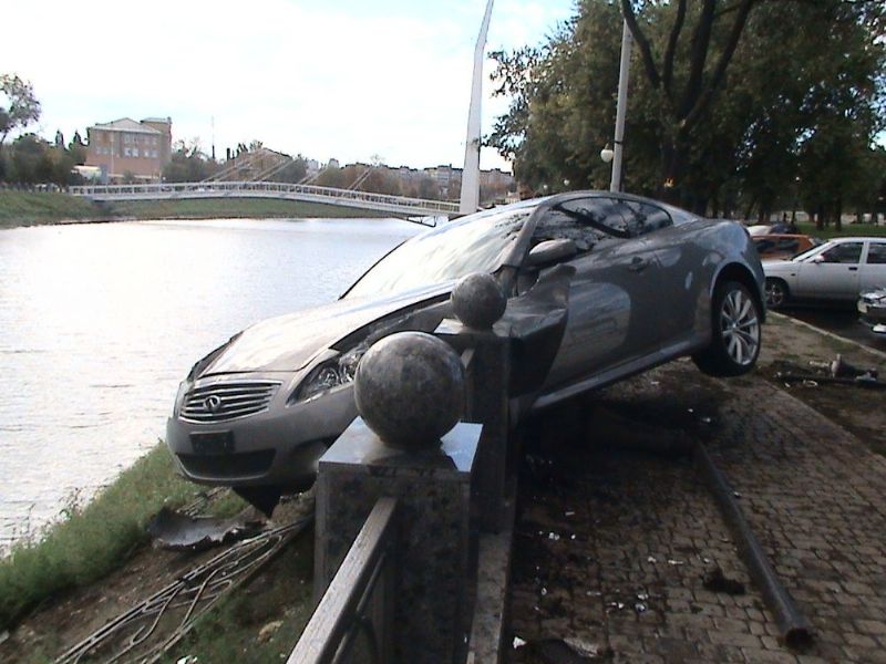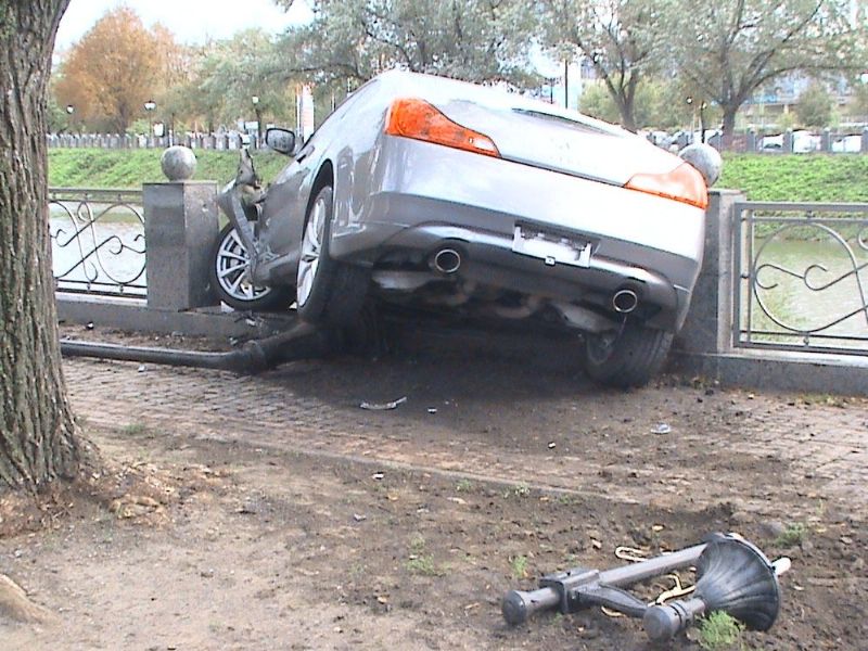 9 сентября примерно в 14:20 в Харькове в сквере Стрелка на Банном переулке автомобиль «Infiniti G37 coupe» врезался в ограждение набережной.