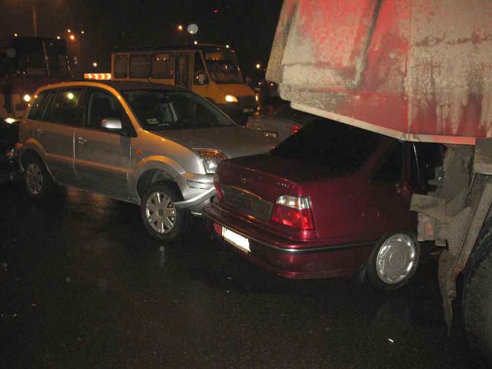 Вследствие этого автобус "Богдан", автомобили Daewoo Nexia, ВАЗ 21011, Ford Fusion, Opel Astra и Mitsubishi Galant, которые двигались сзади потерпели механических повреждений.