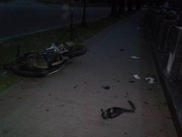 Там, 18 мая, около 02:30, мотоцикл «BASHAN» по неизвестным причинам врезался в столб наружного освещения.