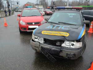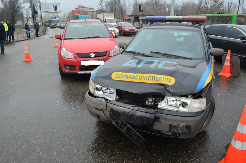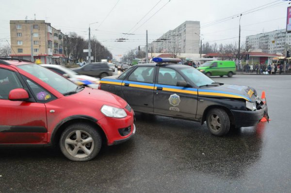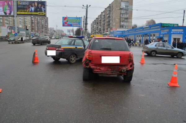 В субботу, около 15:00 на перекрестке улиц Полтавский Шлях и Елизарова в Харькове произошла авария, в результате которой пострадало патрульное авто.