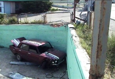 Просьбу показать пропуск водитель красной "шестерки" проигнорировал - просто снес забор и ворвался на территорию гаражного кооператива - рухнул на площадку автомойки с почти трехметровой высоты. Как все произошло, собственными глазами видел один из работников гаражей - "шестерка" неслась на бешеной скорости, и адекватность водителя сразу вызвала сомнения.