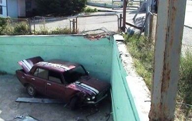 Летающая машина. ''Шестерка'' с пьяным водителем за рулем сбила ограждение гаражного кооператива и упала на территорию автомойки с почти трехметровой высоты. Авария произошла на Салтовке, на улице Тимуровцев, сообщает .