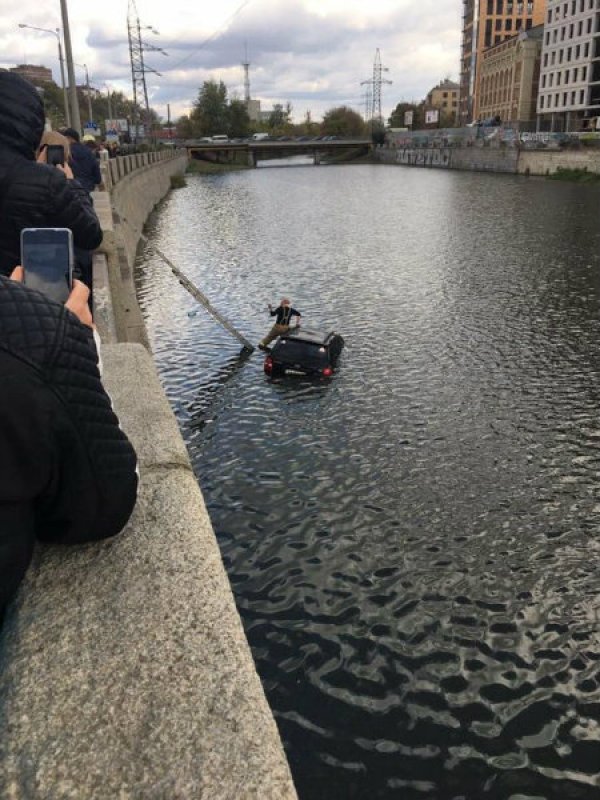 ДТП произошло на Харьковской набережной сегодня, 20 октября, днем. Автомобиль Kia Sorento сломал ограждение и вылетел в реку. За рулем автомобиля была девушка, в ожидании помощи она забралась на крышу автомобиля.