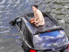 Женщину вытащили с помощью лестницы и троса. Сейчас решают, кто будет вытягивать из реки авто. На месте находится полиция.