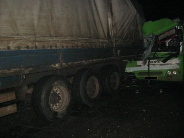 Авария произошла вечером 17 декабря,на 39 км автодороги "Харьков - Ахтырка". Водитель автобуса "Богдан", двигаясь со стороны Богодухова в направлении Харькова, по неизвестным причинам наехал на грузовой автомобиль MAN с прицепом, который стоял на правой обочине по ходу движения автобуса.