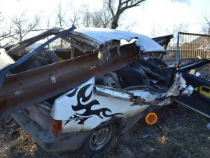 9 марта, рано утром, около 05:30, на автодороге "Харьков - Липцы" произошло смертельное ДТП. Автомобиль ВАЗ-2108 наехал на двух пешеходов, после чего врезался в бетонный отбойник, который насквозь пронизал машину.