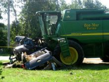 Харьковская область: столкнулись автобус, комбайн и Жигули - погибла женщина. (Фото)