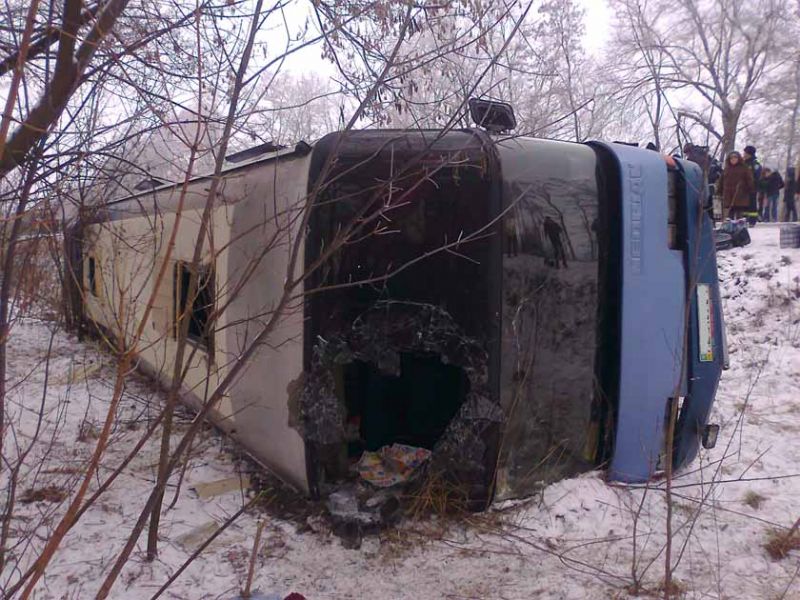 8 января, в 8 часов 30 минут в Харьковской области вблизи поселка Просяное Нововодолажского района водитель автомобиля ЗАЗ 110307 не справился с управлением, выехал на полосу встречного движения, где совершил столкновение с автобусом ''NEOPLAN''.