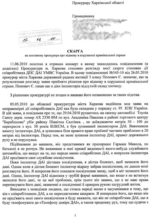 Но Андрей решил идти до конца. Руководствуясь материалами «Дорожного контроля», автомобилист составил жалобу на постановление прокурора об отказе возбуждать уголовное дело. Кроме этого, водитель направил в районный суд административный иск.