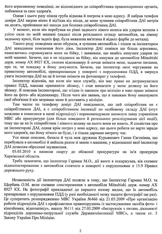 29 апреля в городе Харькове сотрудник ГАИ Николай Гармаш ударил жезлом по остановленному автомобилю.