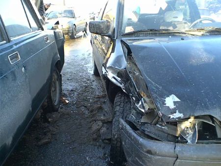 В результате маневра, «Богдан» снес ГАЗу правое зеркало. Чтобы избежать серьезного столкновения, водитель грузовика резко взял влево, где его догнал ВАЗ-2107. Водитель Ford, который шел сзади, не ожидал такой «раздачи слонов» и не успел затормозить на скользком покрытие дороги.